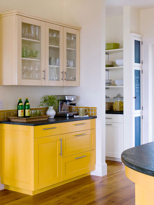 Nếu bạn thích sàn gỗ có màu trung tính như vàng nâu, vàng kem,... bạn nên chọn tủ bếp có hai màu đối xứng (trắng – đen hoặc vàng – đen…) để tạo điểm nhấn. Kiểu phối màu này thích hợp với những chủ nhân cá tính và thích sự phá cách.